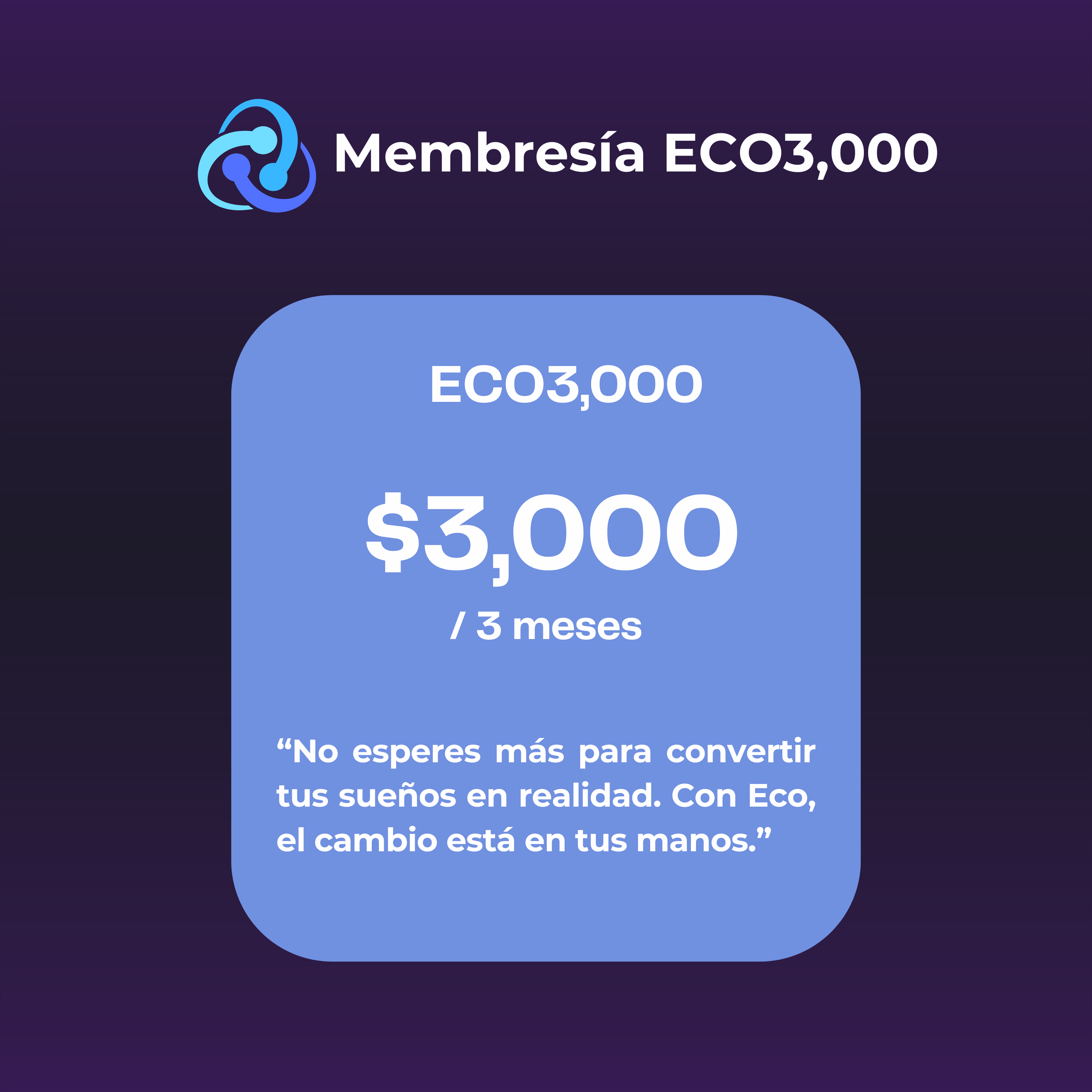 El precio de esta suscripción es de $3000.00. Tendrá una duración de 3 meses, pasado el tiempo tendrás que adquirir una nueva membresía.